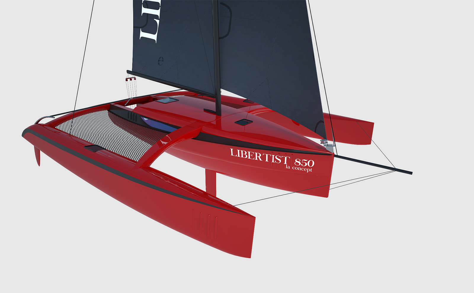 “When creating Libertist 853 I was given full freedom to improve the ever-problematic compromise between comfort and nautical qualities that I am so attached to. The 28 feet size has been chosen to fit a sizable saloon, a bow cabin, a double cockpit bunk bed, a galley and a separate toilet, while ensuring spaciousness and full standing height. It was also crucial that floats and beams were easy to disassemble for comfortable transport. The idea to add extra mini foils has been in my head for a while. The efficiency of foils has been systematically increasing, yet some new solutions are still required. The goal is not to fly, of course, it is rather to increase the security and control the pitching in greater speed. The yacht has been beautifully constructed by Rega Yacht. The design is timeless. The tests have confirmed our expectations on maintaining control while sailing downwind and reducing pitching in tougher weather conditions.”