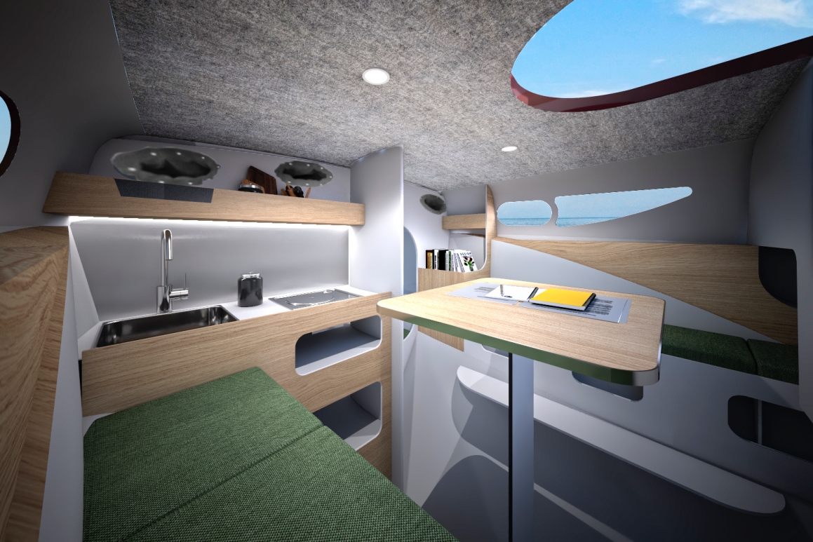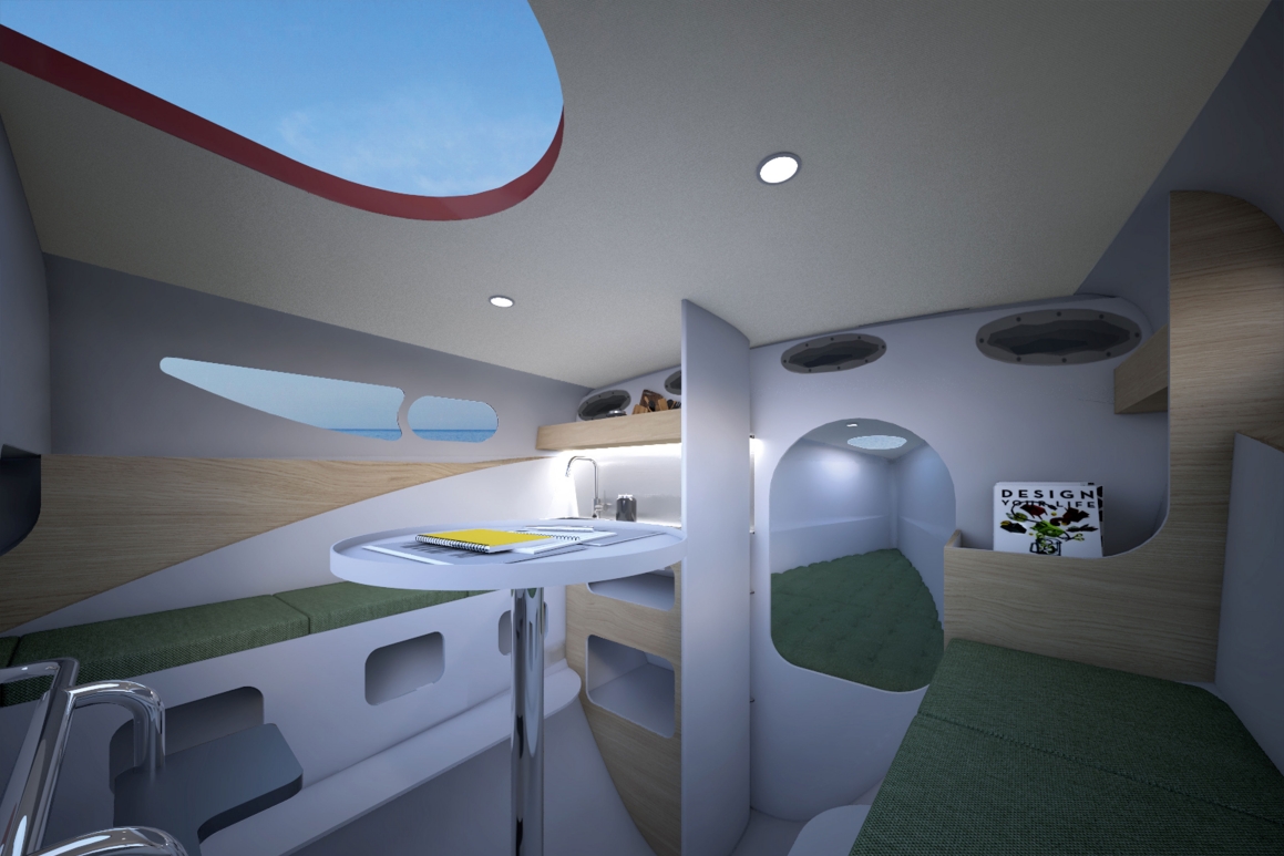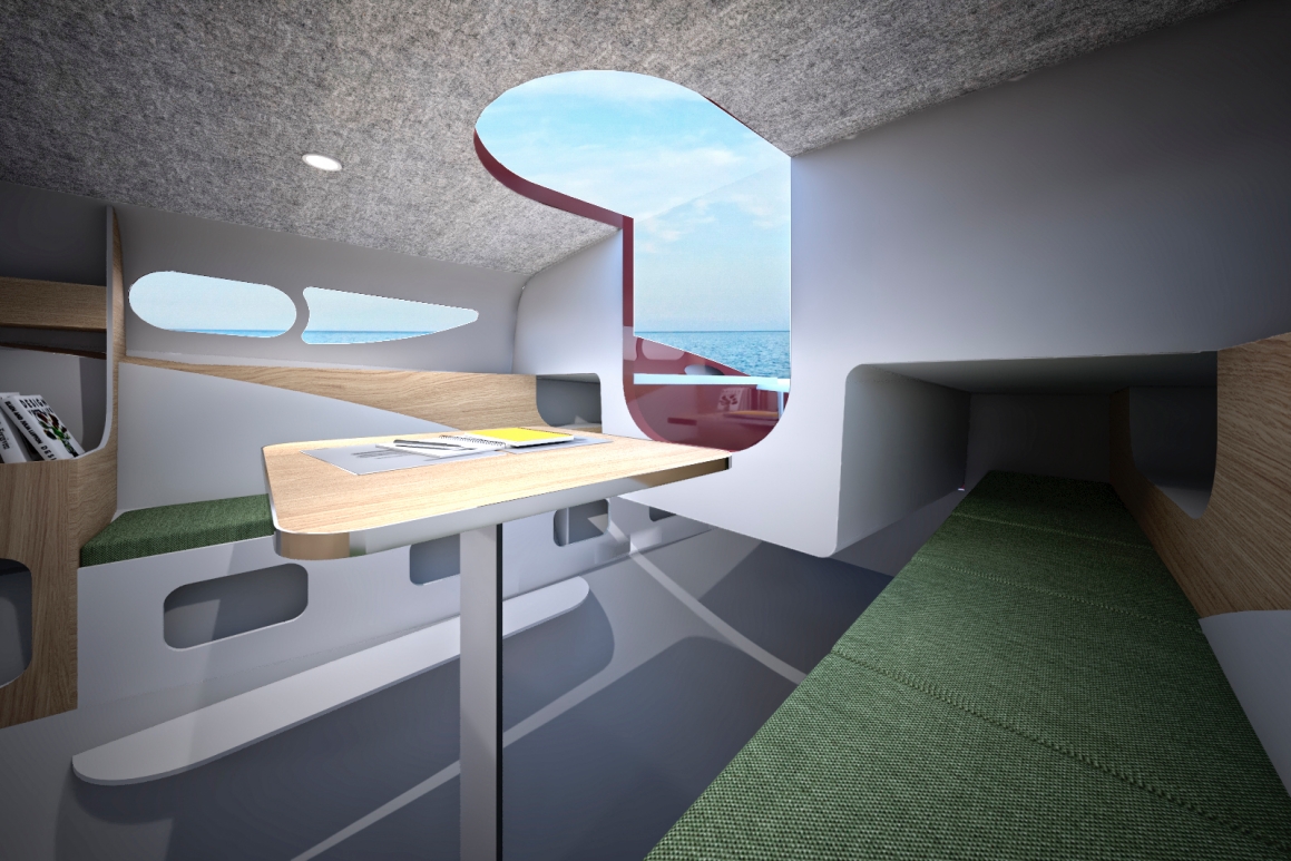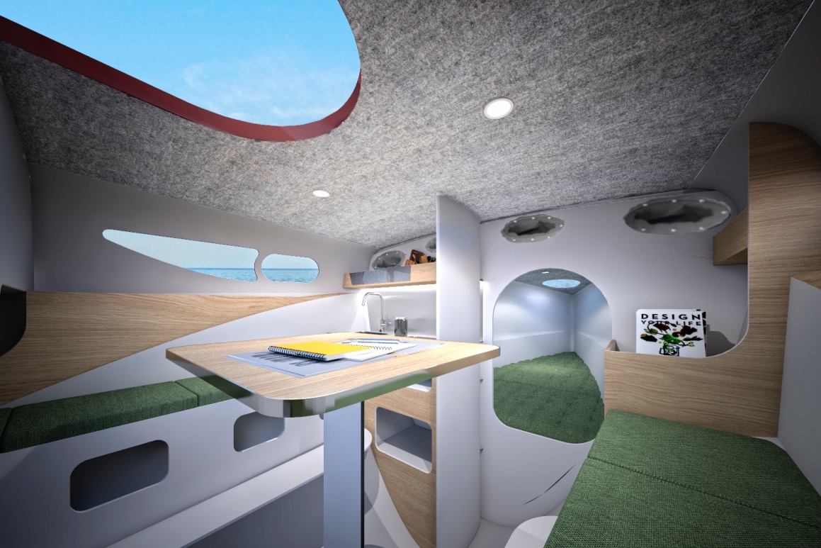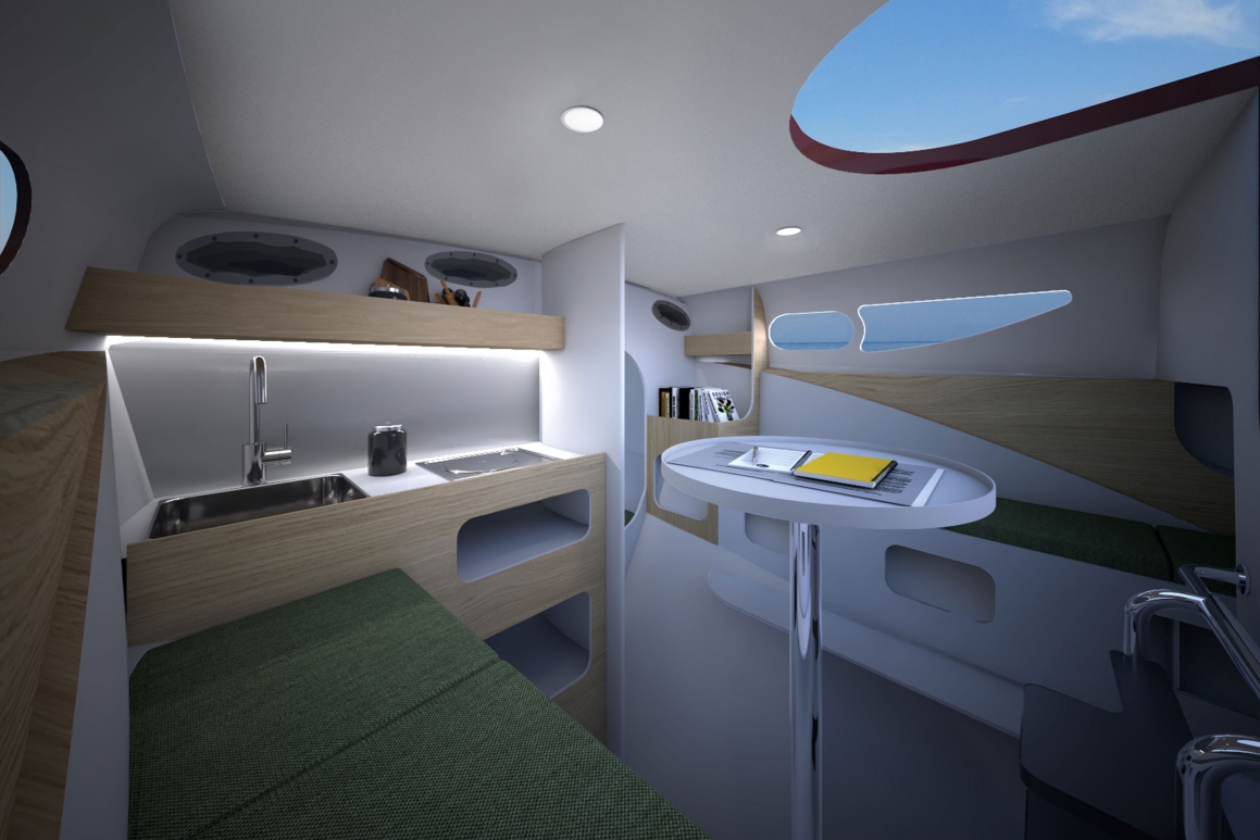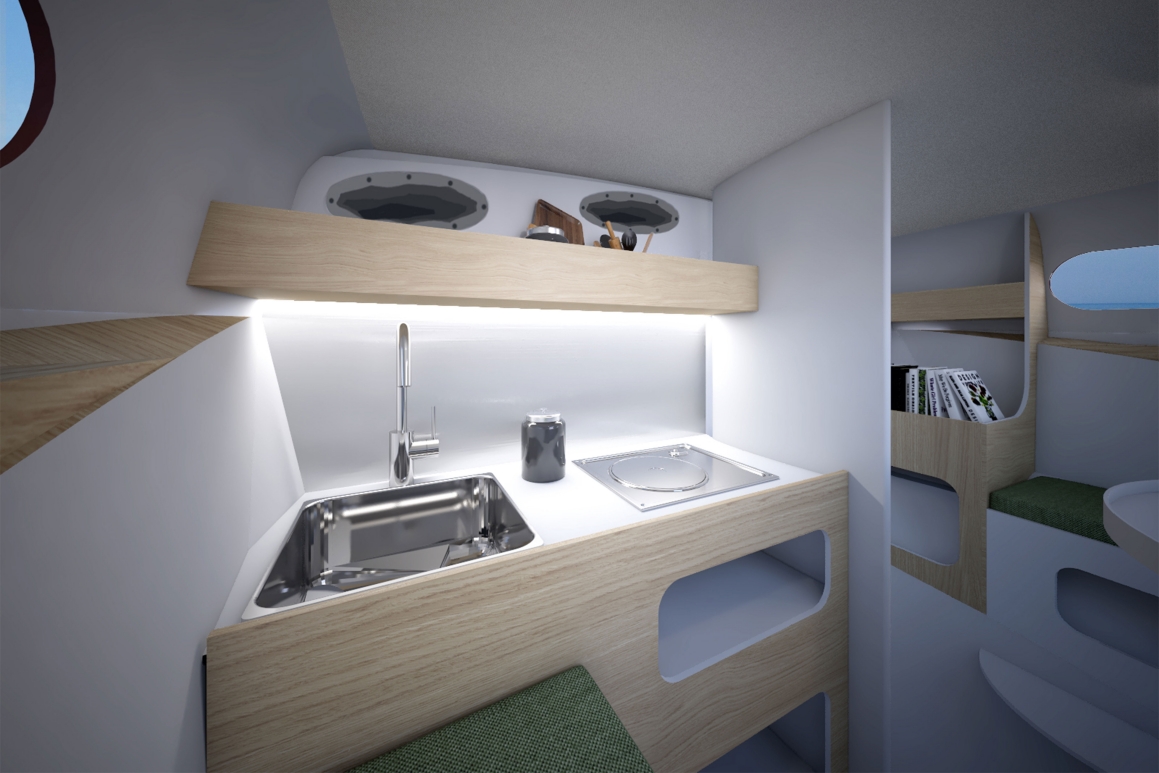 To meet the requirements of such journeys we will equip the trimaran, among others features, with a deck-saloon, three to four functional cabins, WC and a shower, a heat recovery system from the galley, cutting-edge NKE electronics, and anything you and your companion need for this special journey.